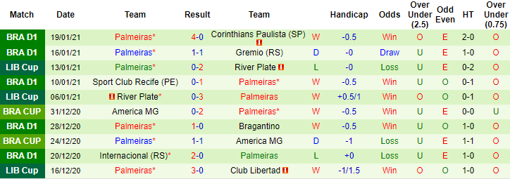 + Thống kê 10 trận gần nhất của Palmeiras
