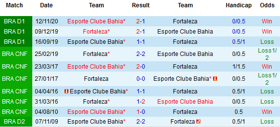 + Lịch sử đối đầu Fortaleza vs Bahia