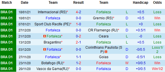 + Thống kê 10 trận gần nhất của Fortaleza