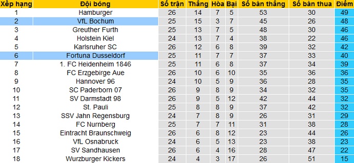 Một trong hai trận đấu muộn nhất của vòng 26 giải hạng nhì Đức sẽ là cuộc đọ sức giữa Fortuna Düsseldorf và Bochum. Hiện tại Fortuna Düsseldorf đang đứng ở vị trí thứ 6 của bảng xếp hạng với 40 điểm sau 25 vòng đấu. Tuy nhiên Fortuna Düsseldorf vẫn còn đang kém các đội trong Top 3 tới 6 điểm trong khi giải còn 9 vòng đấu nữa.