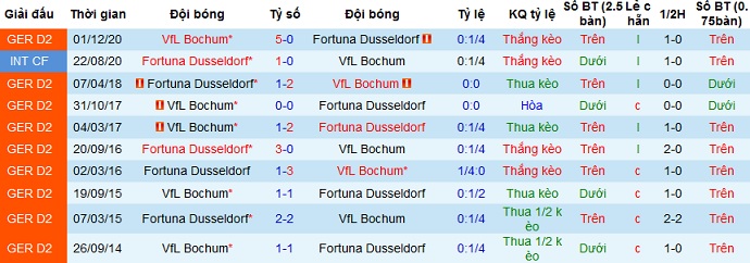 + Lịch sử đối đầu Fortuna Düsseldorf vs Bochum