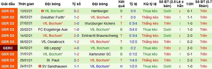 + Thống kê 10 trận gần nhất của Bochum