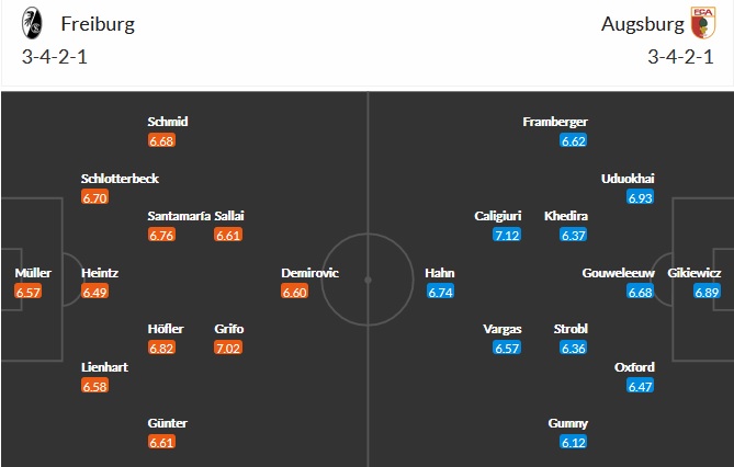 Đội hình dự kiến Freiburg vs Augsburg