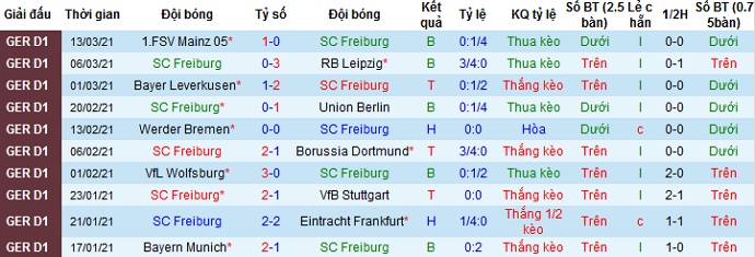 + Thống kê 10 trận gần nhất của Freiburg