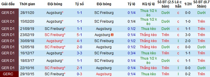 Tuy để thua ở 2 trận sân nhà gần nhất nhưng đối thủ của Freiburg ở 2 trận kể trên đều là các đội đang đứng ở nửa trên bảng xếp hạng. Ngoài ra Augsburg cũng đang có phong độ rất tệ ở các lần du đấu gần đây nên có lẽ chọn cửa trên ở trận đấu này có phần an toàn hơn.
