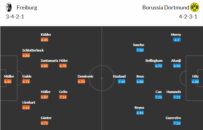Đội hình dự kiến Freiburg vs Dortmund