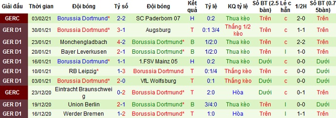 + Thống kê 10 trận gần nhất của Dortmund