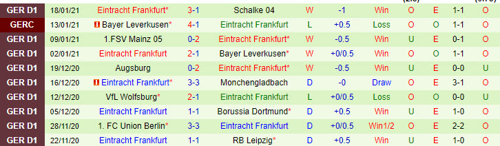+ Thống kê 10 trận gần nhất của Eintracht Frankfurt