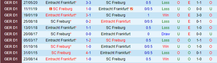 Phong độ và thống kê đối đầu Freiburg - Eintracht Frankfurt gần đây: