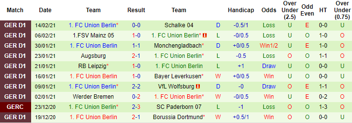 + Thống kê 10 trận gần nhất của Union Berlin