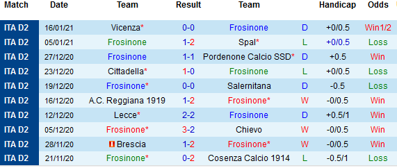 + Thống kê 10 trận gần nhất của Frosinone