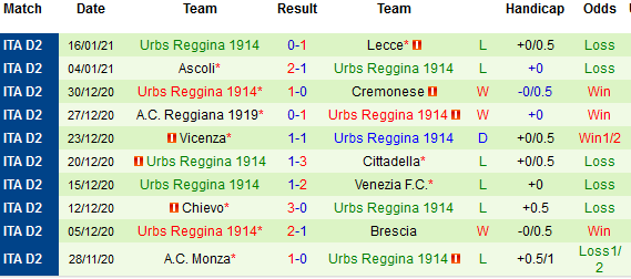 + Thống kê 10 trận gần nhất của Reggina