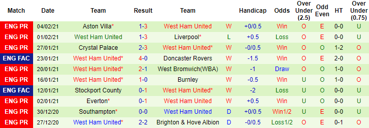 + Soi tỷ lệ kèo tài xỉu: 2 trận đối đầu gần đây đều chỉ có 1 bàn/trận nhưng khả năng có nhiều hơn 2,5 bàn thắng ở trận đấu sắp tới vẫn được đánh giá cao. Bởi lẽ đội khách West Ham đang thăng hoa và 5 trận gần đây của họ đều có tối thiểu 3 bàn/trận. Chọn: Tài.