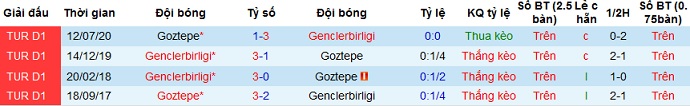 + Lịch sử đối đầu Göztepe vs Genclerbirligi