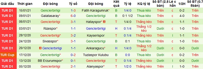 + Thống kê 10 trận gần nhất của Genclerbirligi