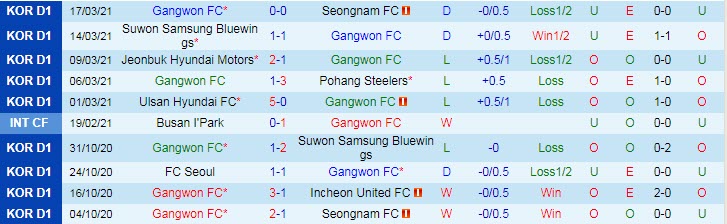 + Thống kê 10 trận gần nhất của Gangwon