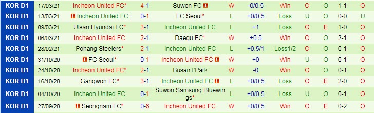 + Thống kê 10 trận gần nhất của Incheon