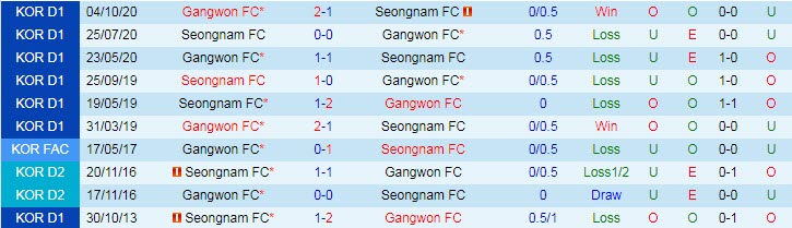 Phong độ và thống kê đối đầu Gangwon - Seongnam Ilhwa gần đây: