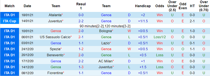 3/4 lần so tài gần nhất giữa Genoa và Cagliari thuộc khuôn khổ Serie A không chứng kiến quá 2 pha lập công. Kịch bản tương tự hứa hẹn tái diễn vào Chủ nhật (24/1).