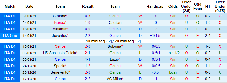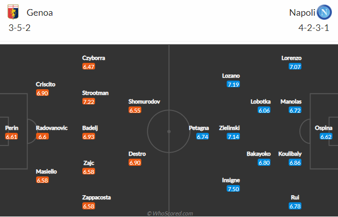 Napoli đang xếp ở vị trí thứ 5 trên bảng xếp hạng Serie A 2020/21 với 37 điểm sau 19 trận, chỉ kém đội xếp trên Juventus 2 điểm. Trong khi đó Genoa mới giành được 21 điểm sau 20 trận, xếp sau Napoli 9 bậc. 3 trận làm khách gần đây trên sân của Genoa, Napoli toàn thắng. Thế nên trận đấu sắp tới Napoli được đánh giá cao hơn trước giờ bóng lăn là hoàn toàn hợp lý.