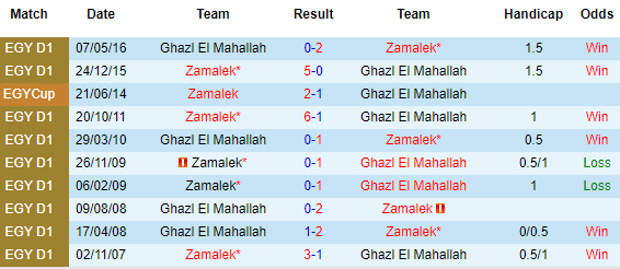 + Lịch sử đối đầu Ghazl Al Mahalla vs Zamalek