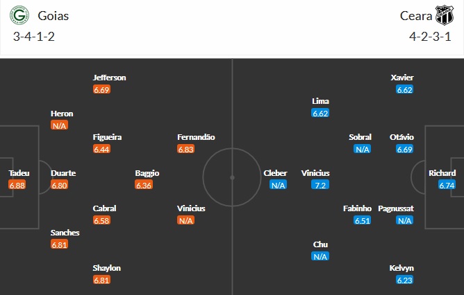 Đội hình dự kiến Goiás vs Ceará