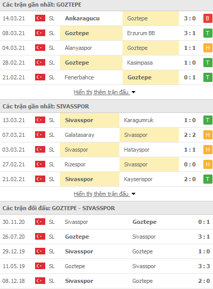Phong độ và thống kê đối đầu gần đây Goztepe vs Sivasspor: