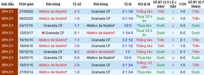 Trong 7 lần gặp nhau gần nhất giữa hai đội chỉ có một lần duy nhất Granada cầm hòa đối phương, còn 6 lần còn lại chiến thắng đều thuộc về Atletico Madrid. Việc để Celta Vigo cầm hòa mới đấy có lẽ chỉ là một tai nạn, thế nên chọn cửa trên ở trận đấu này vẫn là hợp lý.