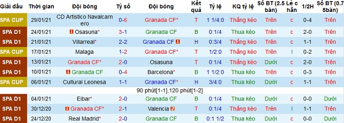 + Thống kê 10 trận gần nhất của Granada