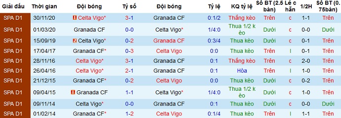 + Lịch sử đối đầu Granada vs Celta Vigo