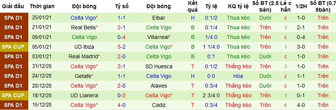 + Thống kê 10 trận gần nhất của Celta Vigo