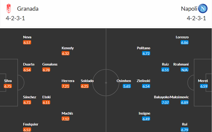 Đội hình dự kiến Granada vs Napoli