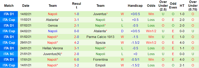 - Thống kê 10 trận gần nhất của Napoli