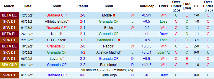 + Thống kê 10 trận gần nhất của Granada