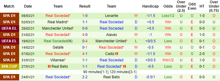 + Thống kê 10 trận gần nhất của Sociedad