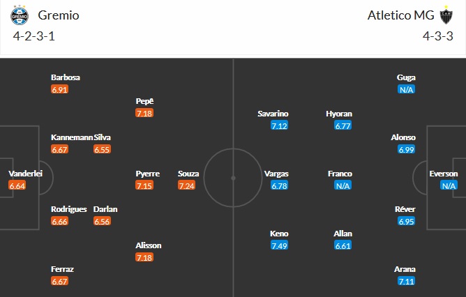 Đội hình dự kiến Grêmio vs Atlético Mineiro