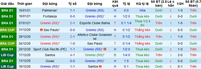 + Thống kê 10 trận gần nhất của Grêmio