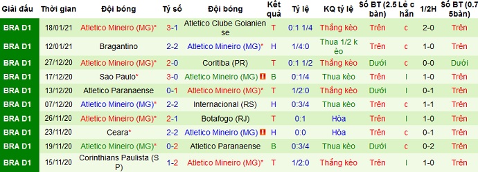 + Thống kê 10 trận gần nhất của Atlético Mineiro