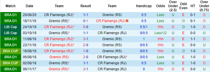 + Lịch sử đối đầu Gremio vs Flamengo