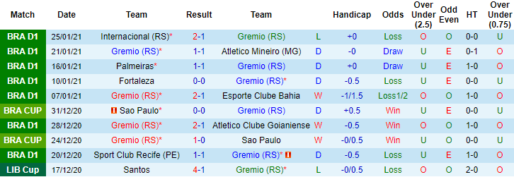 + Thống kê 10 trận gần nhất của Gremio