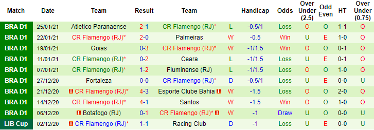 + Thống kê 10 trận gần nhất của Flamengo