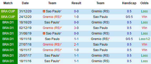 + Lịch sử đối đầu Gremio vs Sao Paulo