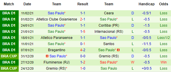 + Thống kê 10 trận gần nhất của Sao Paulo