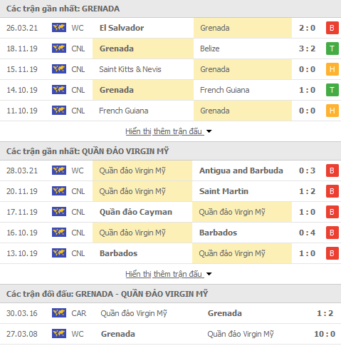 Phong độ và thống kê đối đầu gần đây Grenada vs Virgin: