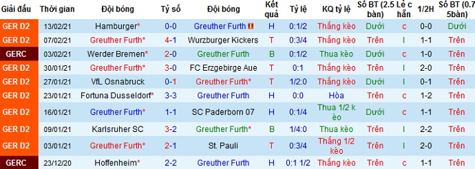 + Thống kê 10 trận gần nhất của Greuther Fürth