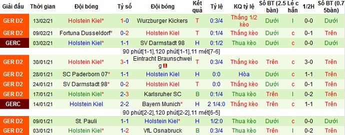 + Thống kê 10 trận gần nhất của Holstein Kiel