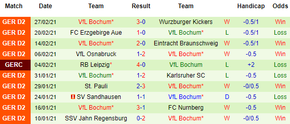 + Thống kê 10 trận gần nhất của Bochum