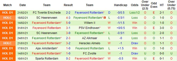 + Thống kê 10 trận gần nhất của Feyenoord