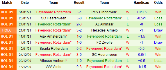 + Thống kê 10 trận gần nhất của Feyenoord