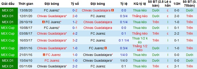 Lý do là vì ở cả 7 lần gặp nhau gần nhất giữa hai đội Guadalajara đều giành chiến thắng, bất kể trên sân nhà hay sân khách. Và với phong độ kém cỏi trên sân khách của Juárez như hiện tại thì có lẽ chọn cửa trên vẫn là hợp lý.